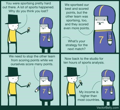 One of the reasons that I love sports is that I also love a good story. Unfortunately, sports commentary and writing is filled with awful storytelling. And rather than say anything substantive about sports writing, I'll use this as an excuse to post my two favorite jokes about it. Happy new year!
